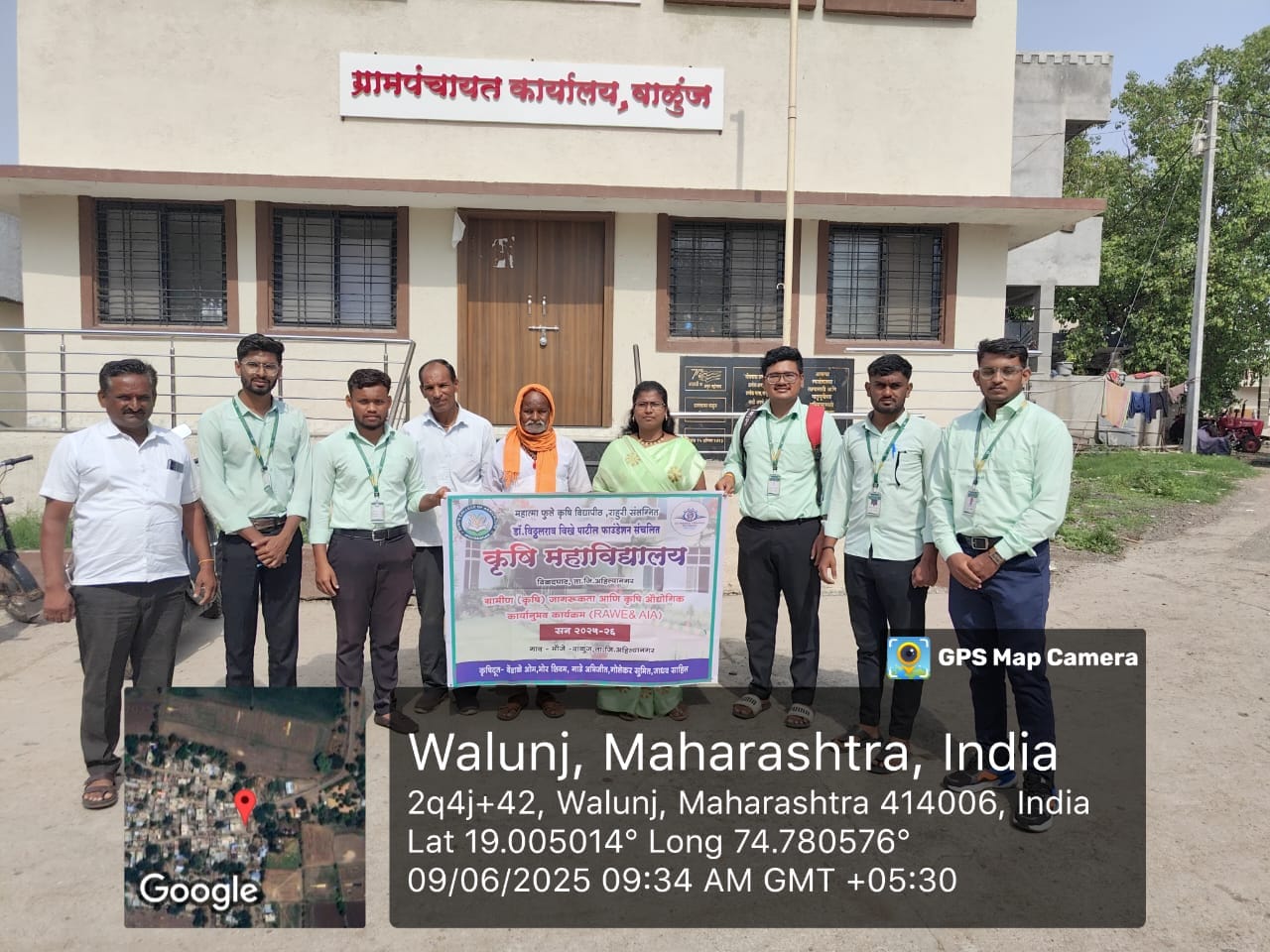 नगर, दि.9-महात्मा फुले कृषि विद्यापीठ संलग्न डॉ.विठ्ठलराव विखे पाटील कृषि महाविद्यालय, विळदघाट येथील चतुर्थ वर्षाचे विद्यार्थी ग्रामीण कृषि जागरुकता व कृषि औद्योगिक कार्यानुभव कार्यक्रम अंतर्गत वाळुंज गावात दाखल झाले. ग्रामस्थांच्या वतीने त्यांचे स्वागत करण्यात आले. यावेळी वाळुंजच्या सरपंच पा. गो. हिंगे,उपसरपंच गायकवाड,तलाठी कराळे व ग्रामस्थ उपस्थित होते.