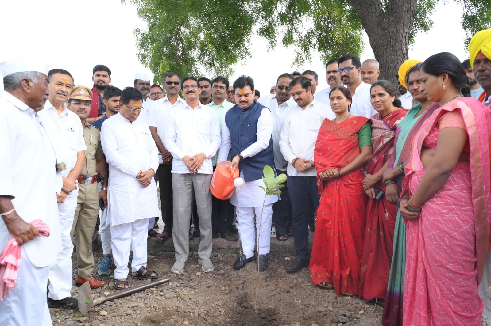 पुण्यश्लोक अहिल्यादेवी होळकर यांच्या त्रिशताब्दी जयंतीच्या औचित्याने आणि “एक वृक्ष आईसाठी, एक वृक्ष देशासाठी” या प्रेरणादायी उपक्रमांतर्गत आदर्श गाव हिवरे बाजार येथे मातृस्मृती वनमंदिरात रविवारी वृक्षारोपण कार्यक्रम पार पडला. यावेळी विधानपरिषदेचे सभापती प्रा. राम शिंदे यांच्या हस्ते फणस व आमदार काशिनाथ दाते यांच्या हस्ते बेहडा वृक्षाची रोपटी लावण्यात आले. कार्यक्रमाला आमदार काशिनाथ दाते, मा. जि.प. सदस्य वसंतराव चेडे, सुभाष दुधाडे,प्रल्हाद गीते सहा.तालुका पोलीस निरीक्षक यांच्यासह गावातील मान्यवर आणि ग्रामस्थ मोठ्या संख्येने उपस्थित होते.