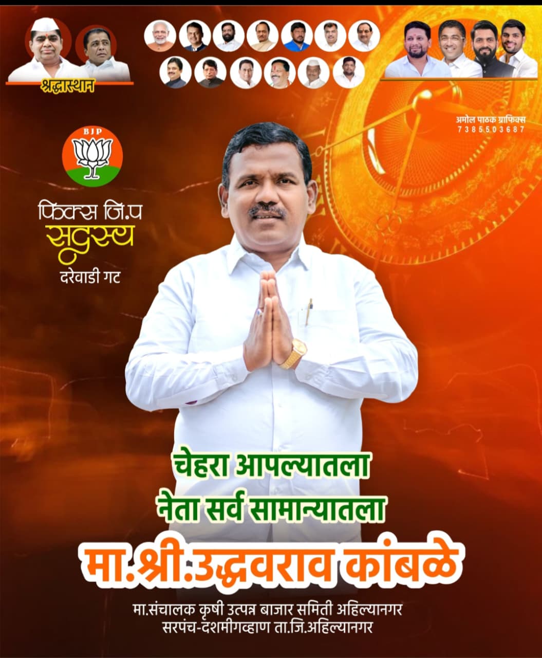 दरेवाडी परिसरातील सर्वसामान्यांचे नेते म्हणून ओळख असलेले कृषि उत्पन्न बाजार समितीचे माजी संचालक उद्धवराव कांबळे यांना यंदाच्या जिल्हा परिषद निवडणुकीत उभे राहावे अशी स्थानिक नागरिकांची ठाम प्रतिक्रिया व्यक्त होत आहे.
